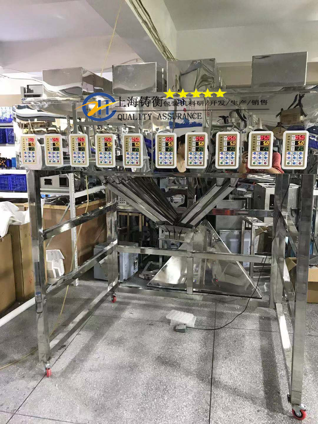 鑄衡生產(chǎn)的高精度粉劑分裝機(jī)專為分裝顆粒粉末物料研發(fā)生產(chǎn),采用微電腦智能控制下料,精度更高,速度更快,性能可靠,全不銹鋼密封機(jī)體,具有防腐、防塵之功效,由料斗、振動(dòng)送料器、稱量器、稱斗、開門機(jī)構(gòu)等組成。
