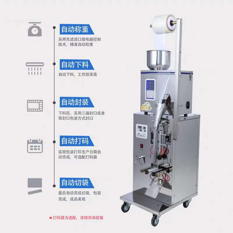 包裝機(jī)采用智能程序進(jìn)行控制袋子長短,小袋長度將根據(jù)色標(biāo)自動(dòng)進(jìn)行調(diào)節(jié),簡單方便,在市場上受到廣大用戶的認(rèn)可。適合包裝各種食品、藥品、日用品等,是全自動(dòng)型智能包裝機(jī)械設(shè)備。
